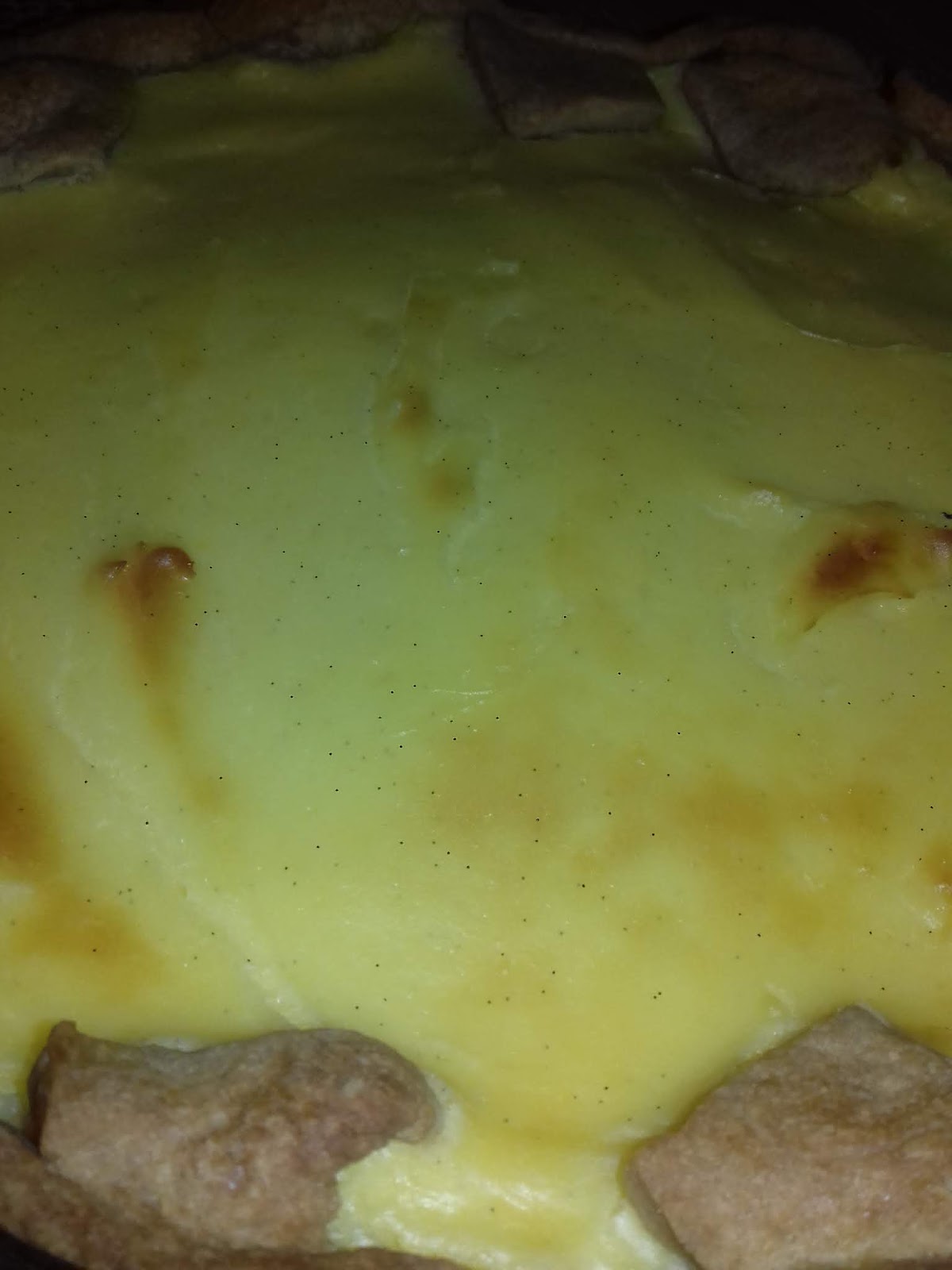 On rempli la tarte avec la crème vanillée et au four pour 40 minutes.